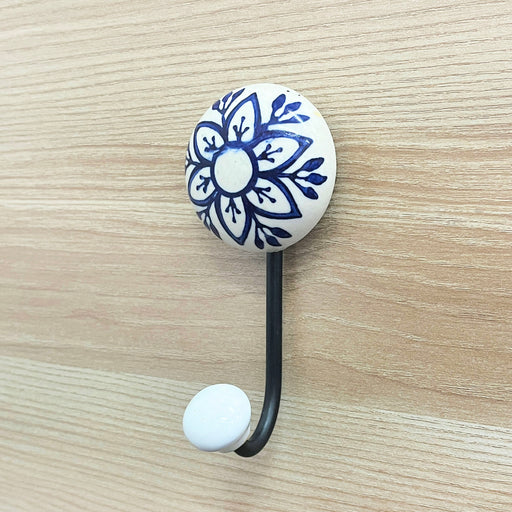 Blue Floral Printed Ceramic & Iron Wall Hook