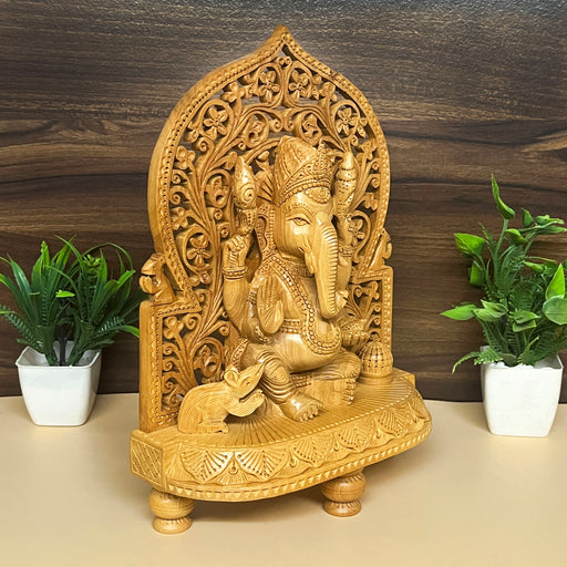 Handmade Wooden Jali Frame Sitting Lord Ganesha Staue