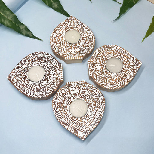 Leaf Shaped Kadamb Wood Tea Light Candle Holders – Set of 4