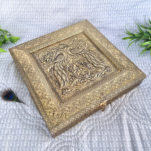 Handcrafted Decorative Dry Fruit Storage Box with Peacock Design