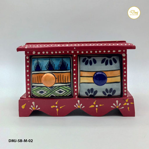 Colorful Handmade Wooden Box with Ceramic Drawers – Multipurpose Storage & Gift Item