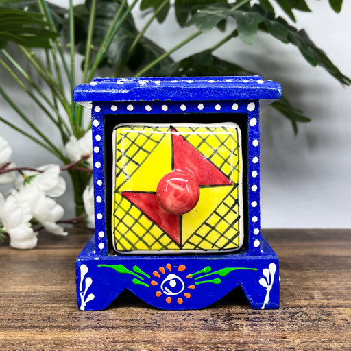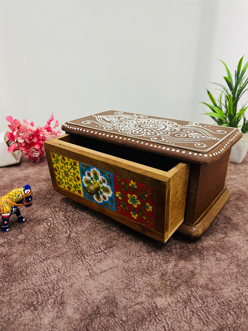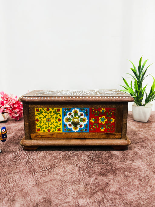 Hand-Painted Wooden Box with Colorful Ceramic Drawer – Unique Home Décor