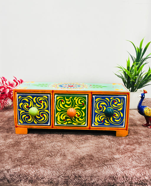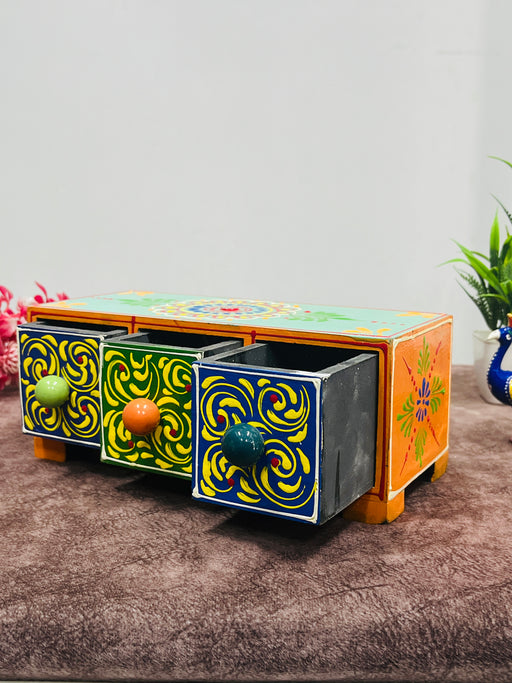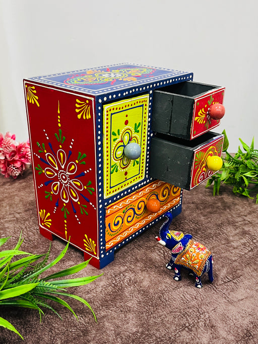 Handcrafted Wooden Painted Multi-Drawer Chest | Decorative Jewelry & Spice Storage Box