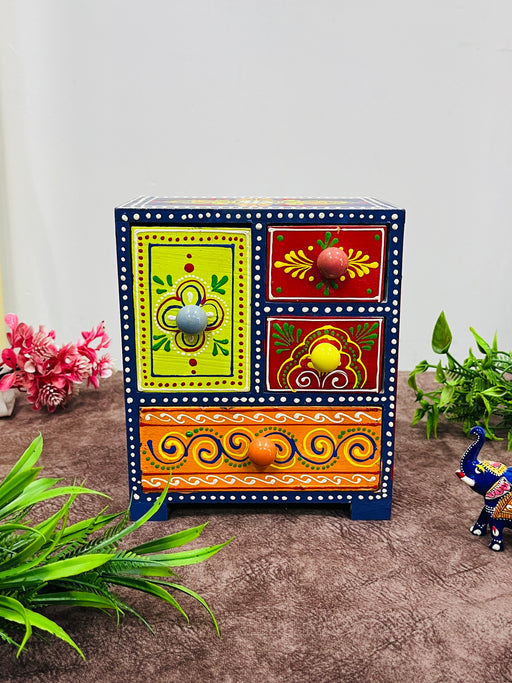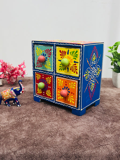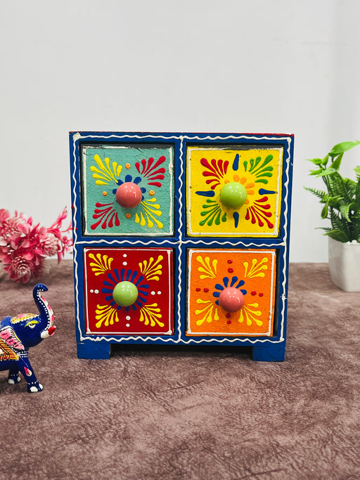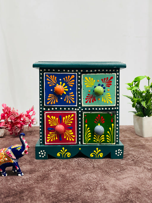 Handcrafted Wooden Painted 4-Drawer Chest | Decorative Jewelry & Storage Box