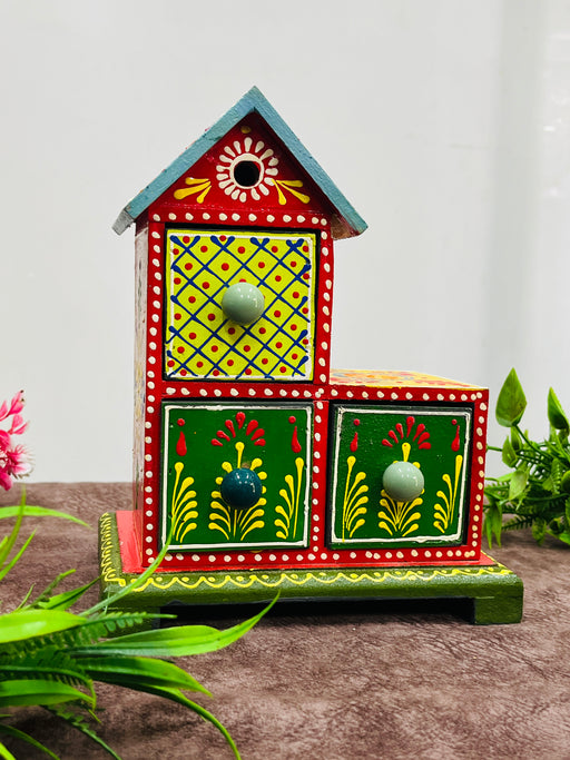 Handcrafted Wooden Painted 3-Drawer Chest | Decorative House-Shaped Jewelry & Storage Box