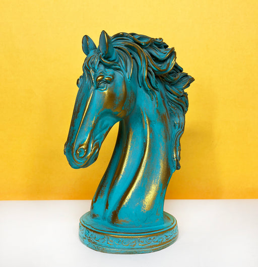 Exquisite Sea Green and Gold Wooden Horse Face Sculpture