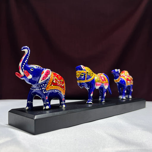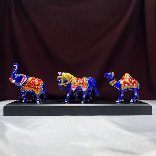 Sculpted Elegance: Elephant Camel Horse Set with Pawti Stand