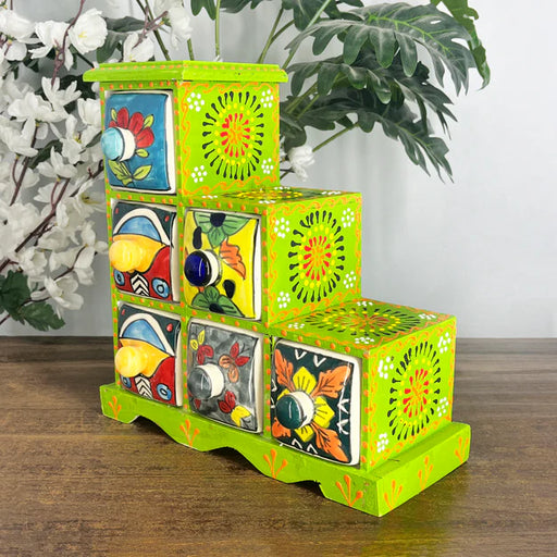 Bulk Handmade Wooden 6 Drawer Ceramic Storage Box – Colorful Spice Organize