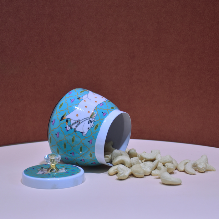 - Sky-Blue Hand-Painted Dry Fruit Jar: Hand-painted with intricate patterns, bringing a pop of color to your home.