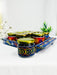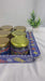 Bring home a splash of color and tradition with this stunning 9-jar hand-painted set. Each glass jar features intricate, vibrant patterns inspired by Indian folk art, perfectly complemented by a royal blue hand-painted wooden tray.