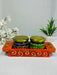 Celebrate the beauty of Indian handicrafts with this hand-painted orange wooden tray set, featuring 2 decorative jars with golden lids. Designed with vibrant colors and intricate patterns, this tray set is perfect for gifting, serving, or adding a touch of tradition to your home decor.