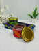 Add a pop of color and tradition to your kitchen or dining table with this hand-painted wooden tray and jar set. Crafted by skilled Indian artisans, the tray is beautifully painted in vibrant yellow with floral and ethnic motifs, paired with two colorful jars that come with golden lids.