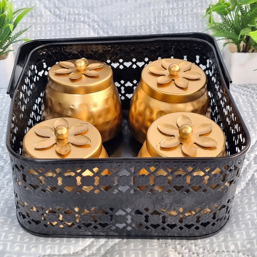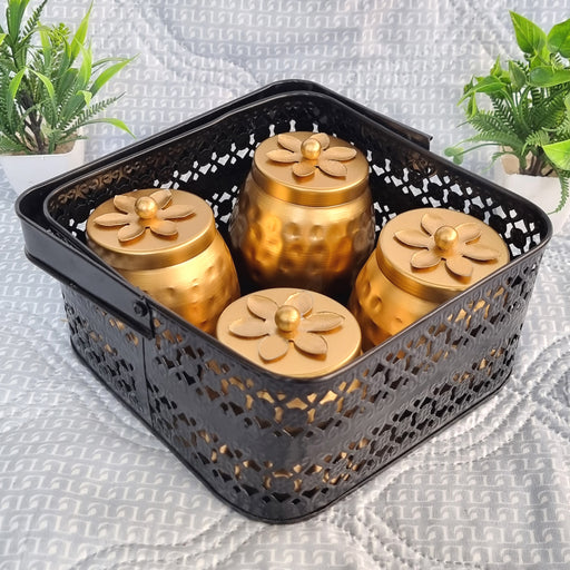 - Metal Gold Basket With 2 Dry Fruit Jar Home/Office Decor (1)