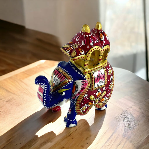 Hand-Painted Royal Elephant Figurine – Meenakari Home Décor