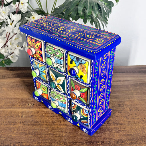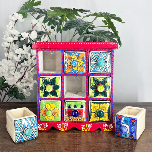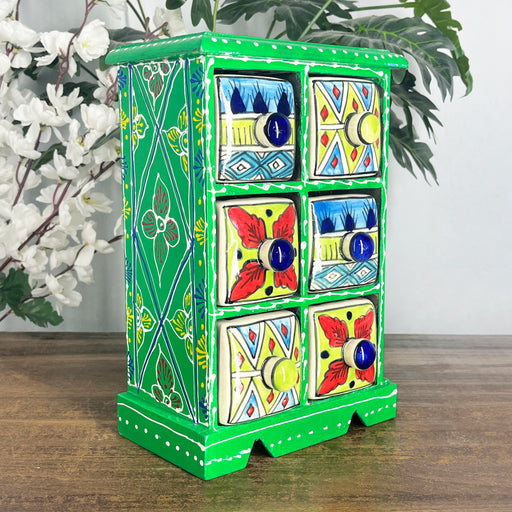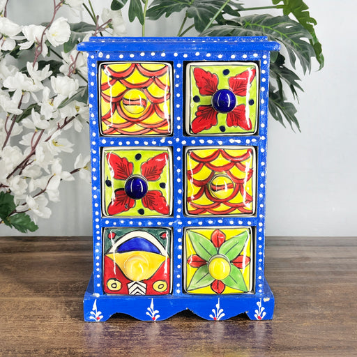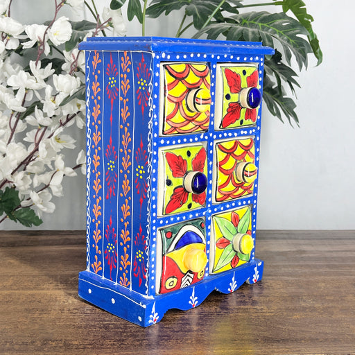 Rajasthani Handcrafted 6-Drawer Mini Chest – Vibrant Ceramic & Wood Jewelry Organizer