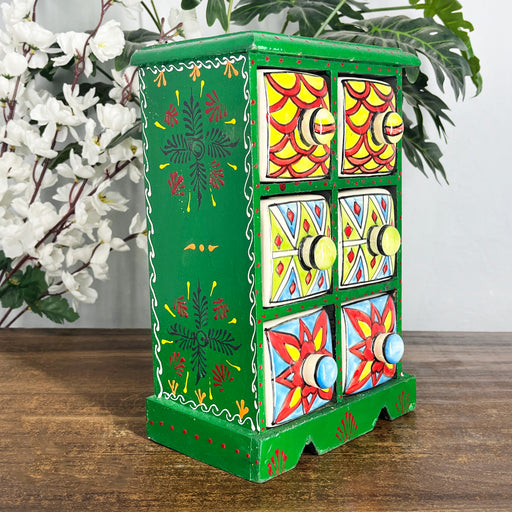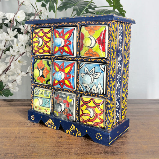 Handcrafted Wooden Painted Multi-Drawer Chest | Decorative Jewelry & Spice Storage Box