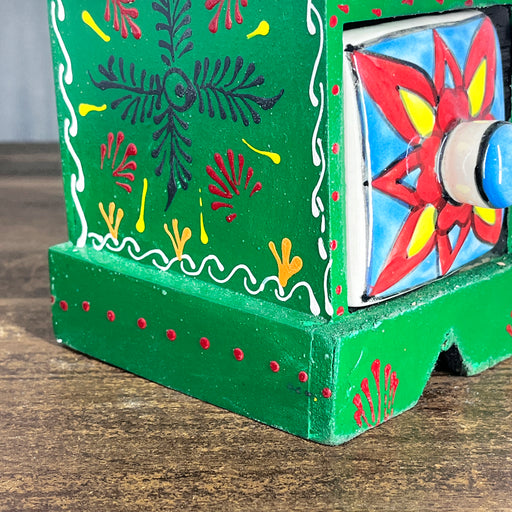 Handmade Wooden Hand-Painted Single Drawer Chest with Tray Top – Ethnic Jewelry & Storage Organizer