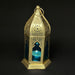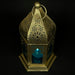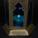 Antique Brass Moroccan Lantern – Handcrafted Metal Candle Holder with Blue Glass Panels