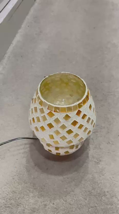 Bring timeless elegance to your home with this Handcrafted Beige Mosaic Glass Lamp, beautifully designed with diamond-cut mosaic patterns that emit a soft, golden glow. Perfect for creating a warm and cozy ambiance, this lamp enhances the aesthetic appeal of your bedroom, living room, or office space.