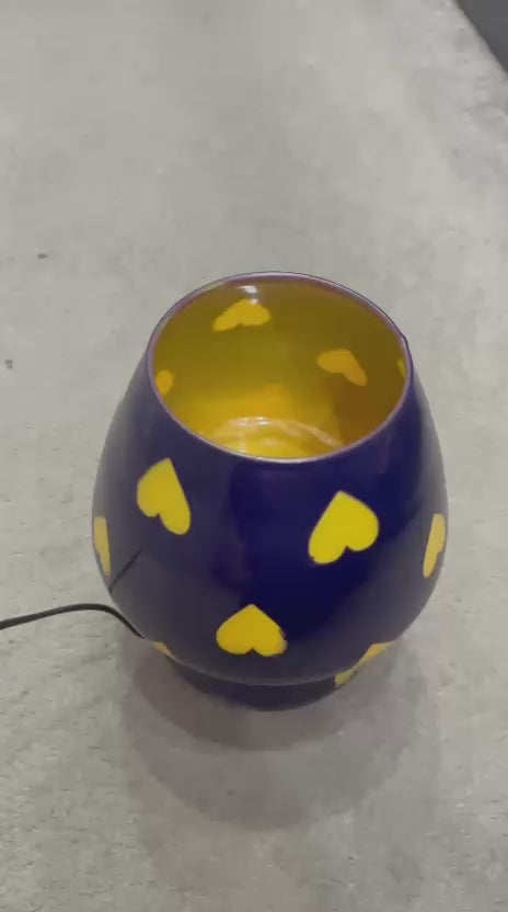 Add a touch of love and elegance to your space with this Handcrafted Blue Glass Lamp featuring charming yellow heart patterns. Its deep blue glass body and soft illumination make it perfect for creating a cozy, romantic ambiance in bedrooms, living rooms, or cafes. Crafted by skilled artisans, this lamp combines simplicity with modern charm.