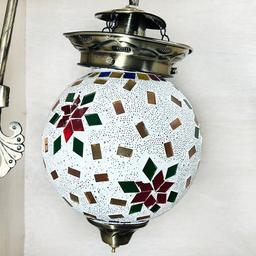 Handmade Mosaic Glass Wall Lamp – Vintage Brass Hanging Lantern Light for Home & Décor