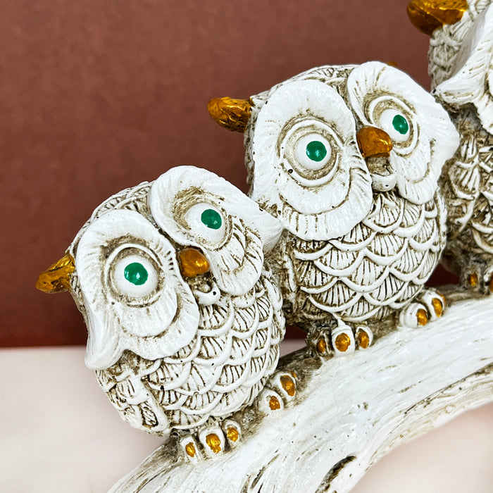 White Resin Owl Group Sculpture by Diwam Handicrafts