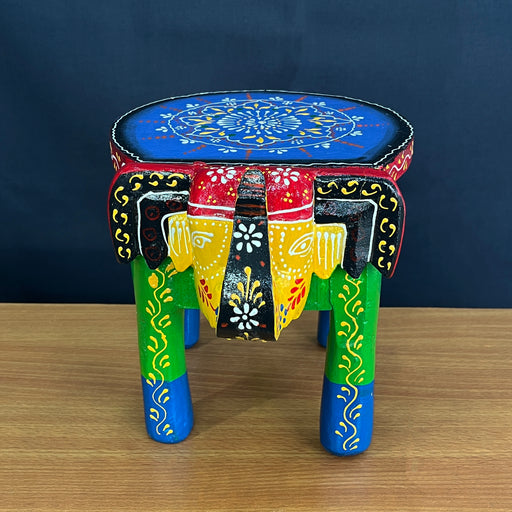 Handmade Multicolor Wooden Elephant Stool Decorative Showpiece