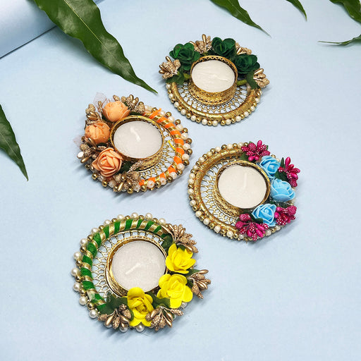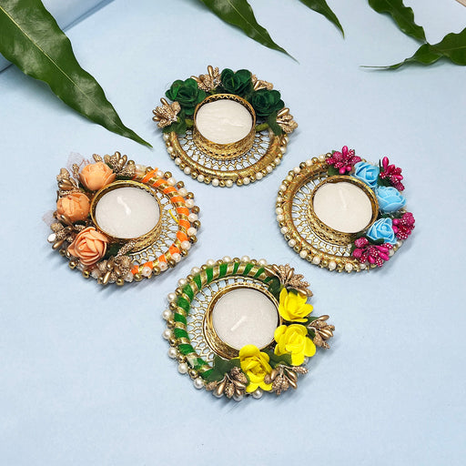 Colorful Floral Tealight Candle Holder for Festive Diwali Decor