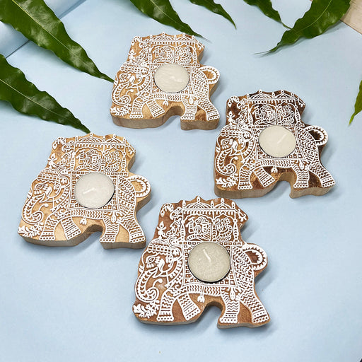 Elephant Handblock Kadamb Wood Candle Holders – Perfect for Diwali Decor