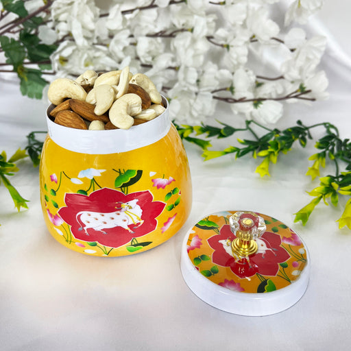 Handpainted Pichwai Art Metal Dry Fruits Jar