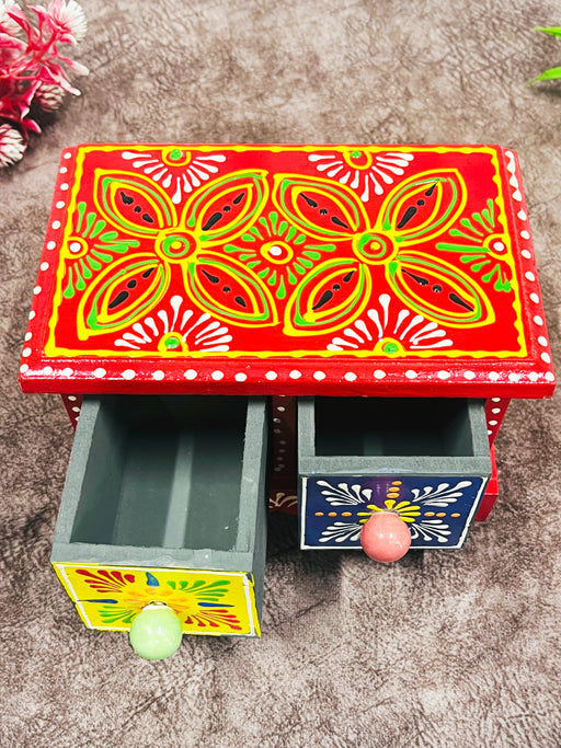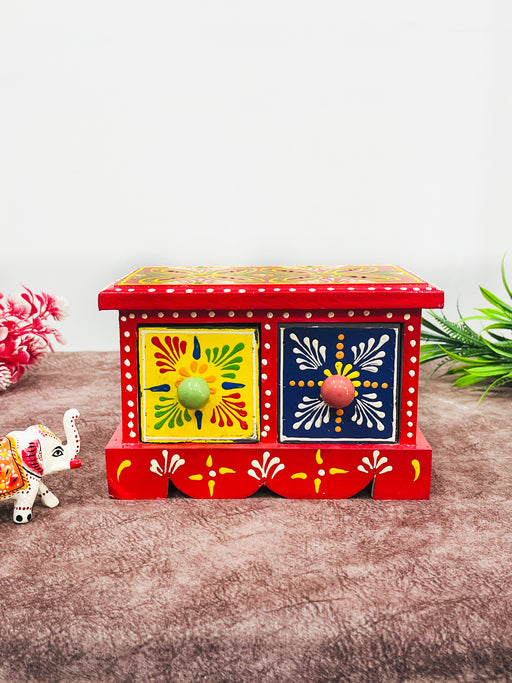 Handmade Wooden Hand-Painted 2 Drawer Chest – Ethnic Jewelry & Trinket Organizer Box