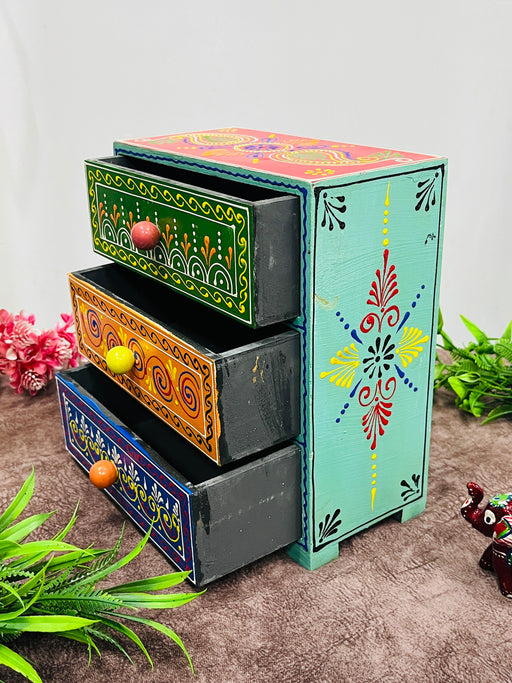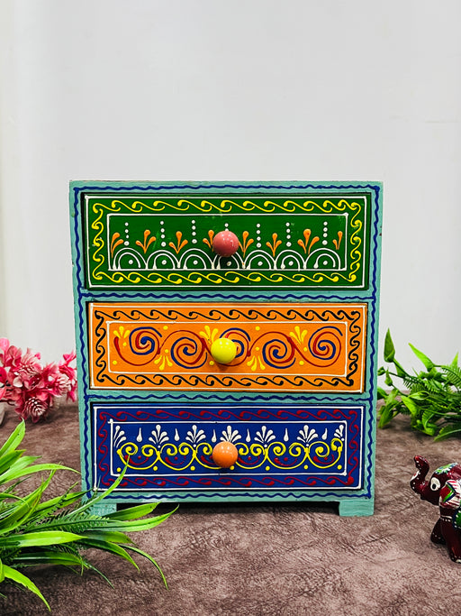 Handmade Wooden Hand-Painted 3 Drawer Chest – Ethnic Jewelry Organizer & Colorful Storage Box