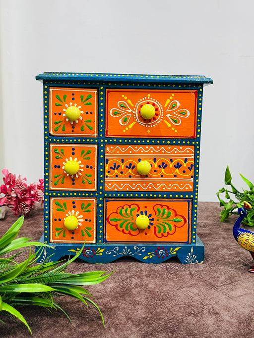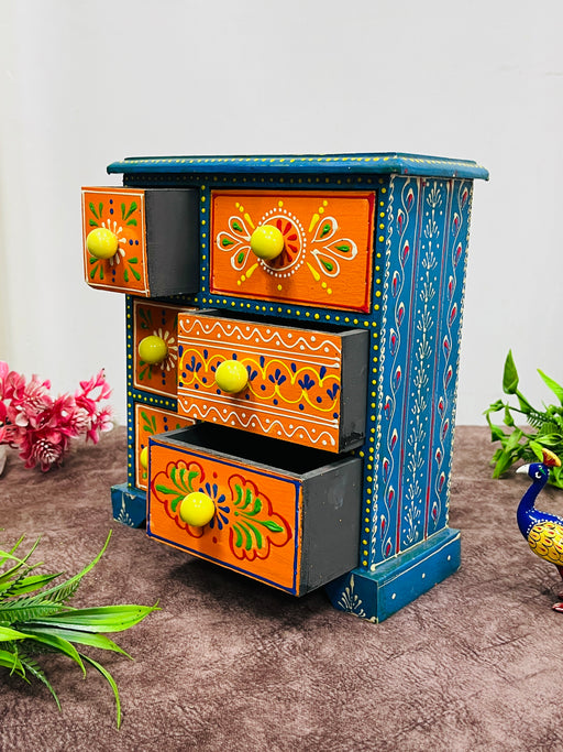 Handcrafted Wooden Painted Multi-Drawer Chest | Decorative Jewelry & Spice Storage Box