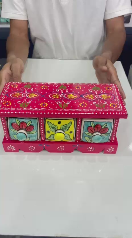 Bring home the Vibrant Red Wooden Box with Ceramic Drawers today and enjoy the perfect balance of practicality and cultural charm. Shop now with Diwam Handicrafts and experience artistry redefined!