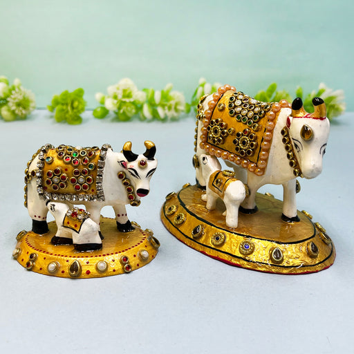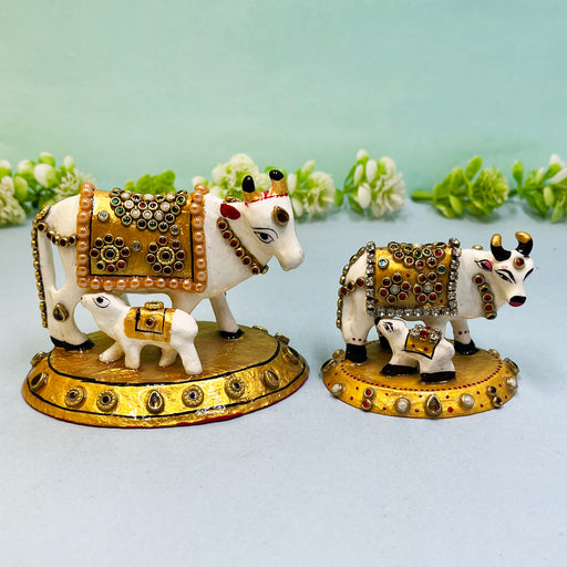 Elegant Meenakari Cow and Calf Set with Golden Embellishments