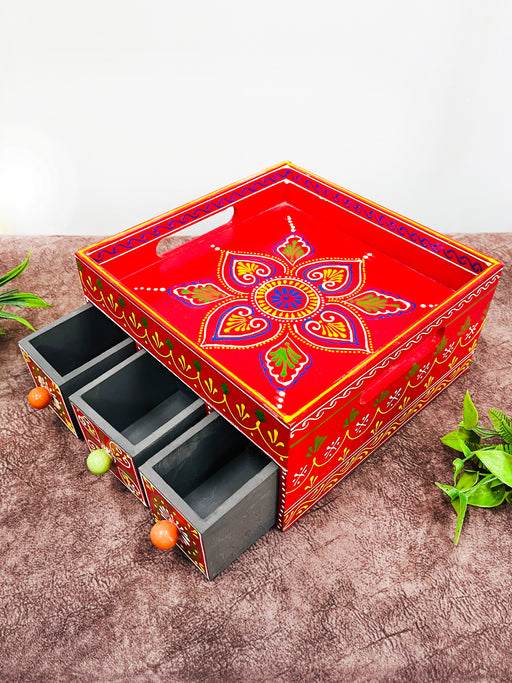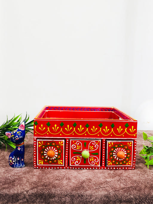Handmade Wooden Hand-Painted 3 Drawer Chest with Tray Top – Ethnic Jewelry & Storage Organizer