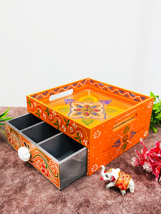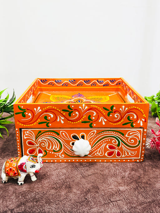 Handmade Wooden Hand-Painted Single Drawer Chest with Tray Top – Ethnic Jewelry & Storage Organizer