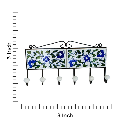 Diwam HandicraftsEn stockDescription: This beautiful key holder is both useful and decorative. With a lovely blue floral design on ceramic and a strong iron frame, it’s per...